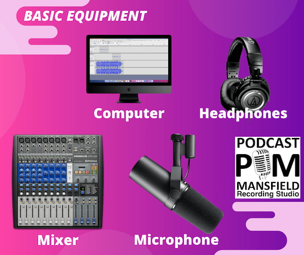 3. Get your equipment: To start a podcast, you will need some basic equipment like a microphone, headphones, and a recording software. You don’t need to spend a lot of money on equipment when starting out. Or, you could find a local studio in which to record.